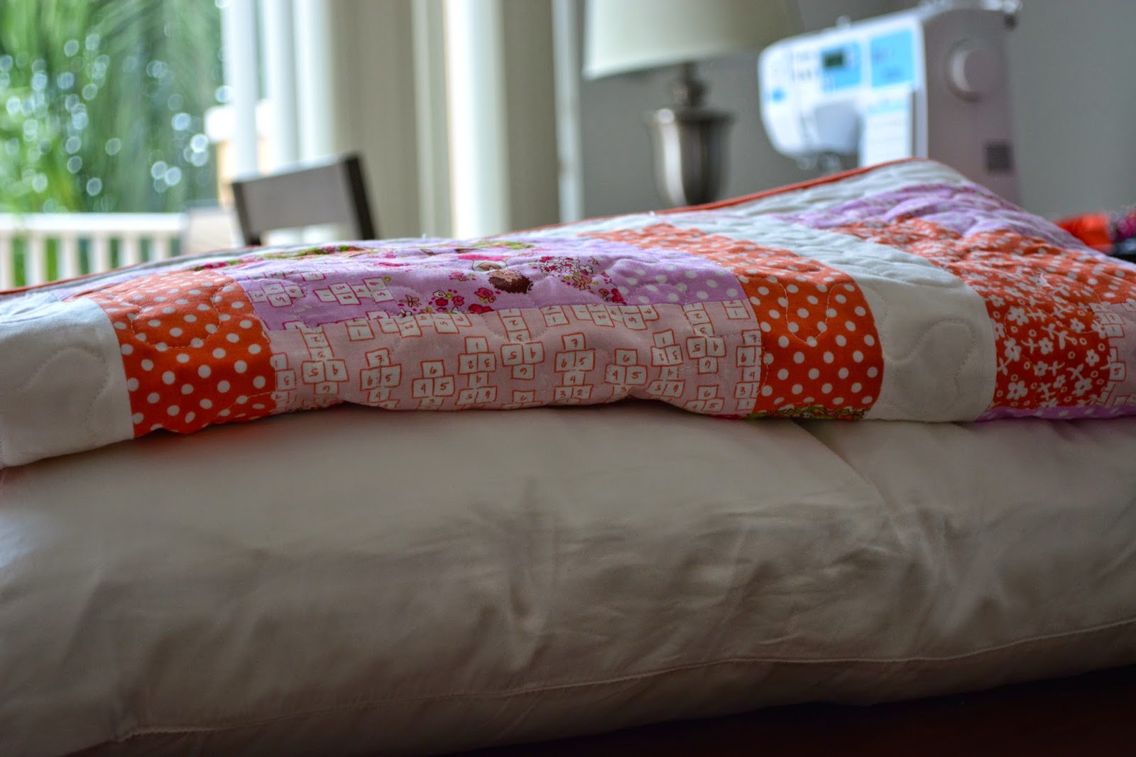After my horrendous sewing episode last week, I thought I would attempt to redeem myself this weekend. I created another mini swoon quilt, except this time, I made it out of one regular-sized swoon block. I instantly fell in love this with block and toyed with the idea of turning it into a full-sized quilt, but then I realized that my background fabric was purple and I really didn't want a whole quilt with a purple background...I don't know, it just wasn't in the plans for me. This block was actually so much fun to create, I loved watching it come together and it was actually MUCH easier than sewing these tiny pieces together for actually mini quilt.